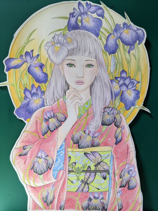 0 23 久しぶりに大人の塗り絵しました😀可愛い💕💕 #大人の塗り絵 #着物姿の乙女たち #色鉛筆 #水彩色鉛筆 #ぬり絵 #イラスト #アートのある暮らし #アート #色鉛筆 22/03/29 23:25