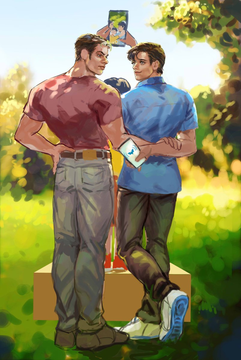 JasonToddBirthday24h @JTBDay24h #happybdaytoJason 和基友的杰森生贺文的配图 杰森和迪克捡到一个孩子之后他们组成了美满的家庭结束了义警的生活但是显然该来的总会来的,迪克这个大猪蹄子੭ ᐕ)੭*⁾⁾