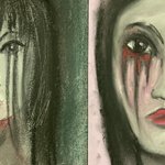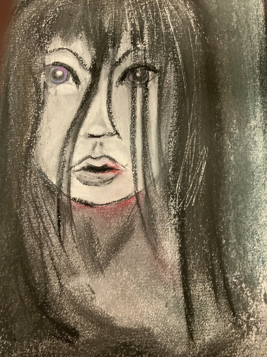 Day 30, #inktober2020, Ominous. Pastel, ink, graphite. My eyes are off, both literally and figuratively. I have super bad eye sight and sometimes I think it affects my art! #inktober2020 #inktober #pastel #pastelart #portrait #spookyseason #ominous #womancreator #womanartist
