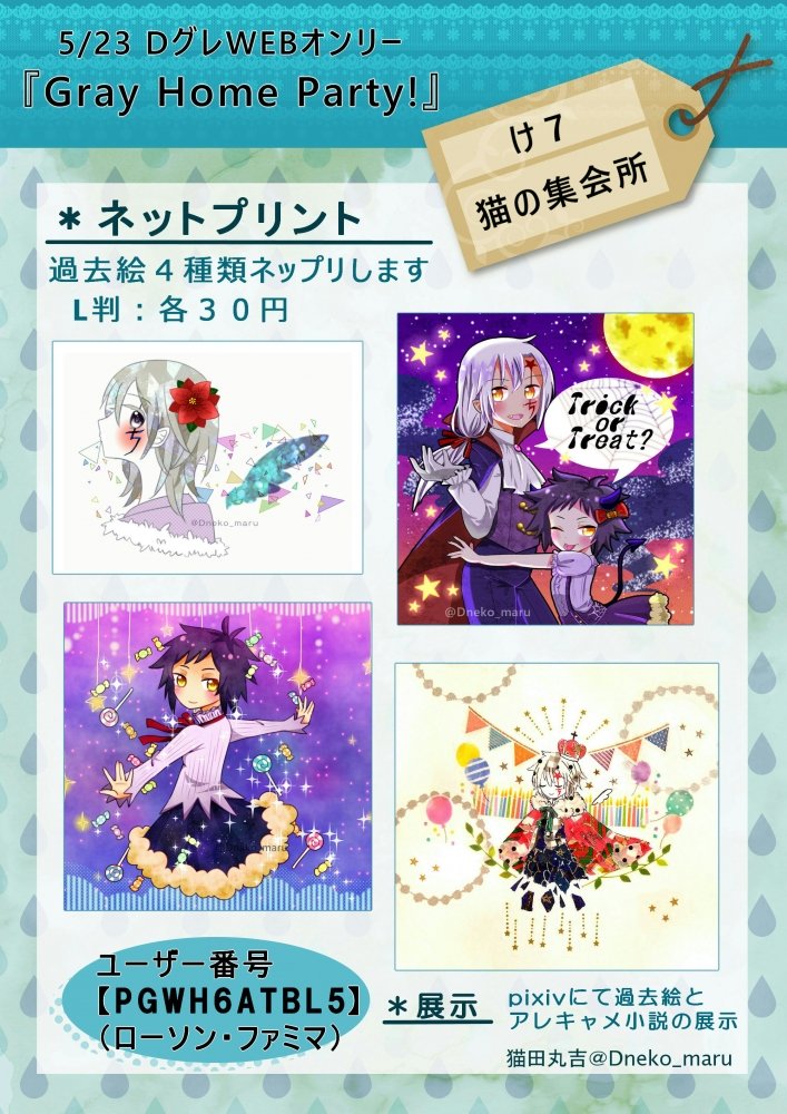 今日スペースで公開していたネットプリントの番号です! 過去絵は5/29まで、新規絵は5/31まで印刷可能です! ネットプリント印刷したら報告もらえると嬉しいです✨ #GHP0523