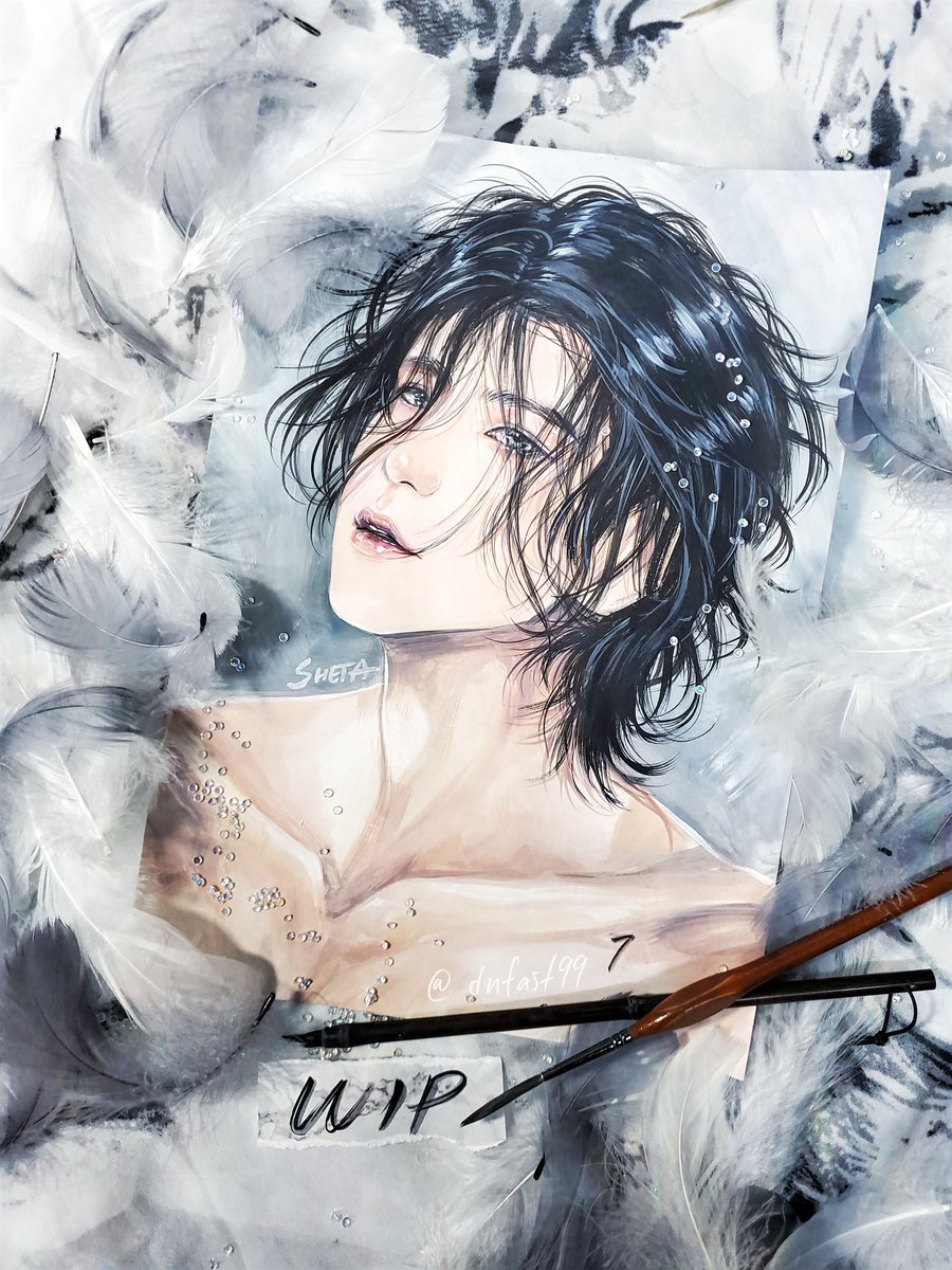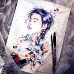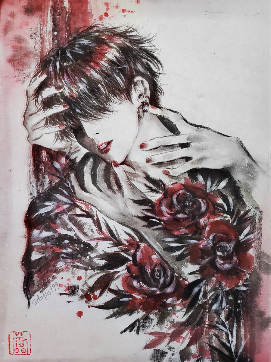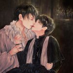 Angel YG x Vampire JK "Everyone says, I should suffer endless loneliness and darkness." "No more," angel dropped a gentle kiss on his lips, "stay alive (for me), I'll fulfill everything you want." thanks reference @ynkkparadise 🖤 #btsfanart #yoonkook #kookgi #yoonkookfanart