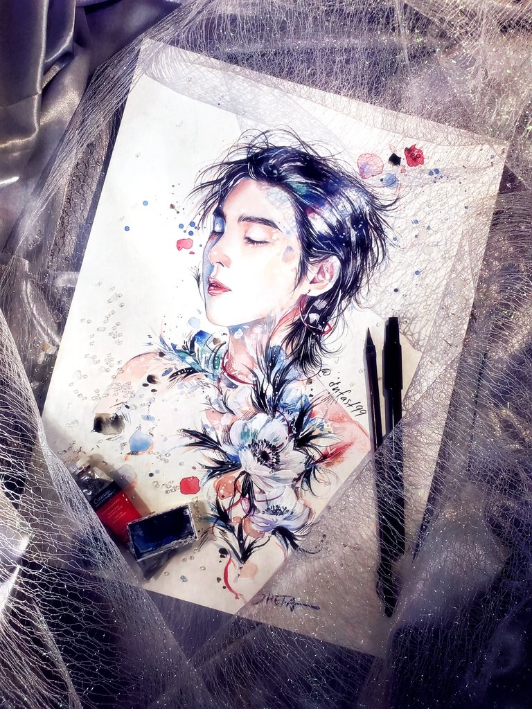 “Let me hug the lonely you under firework.” “Whether you are firework, wildflower or nameless, you're fully bloomed in my heart-- that last forever, lighting up my life.” #rmfanart #namjoonfanart #wildflower #indigo #btsfanart #NAMJOON
