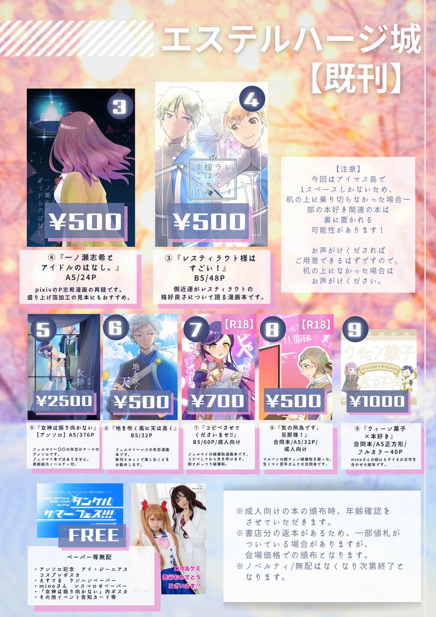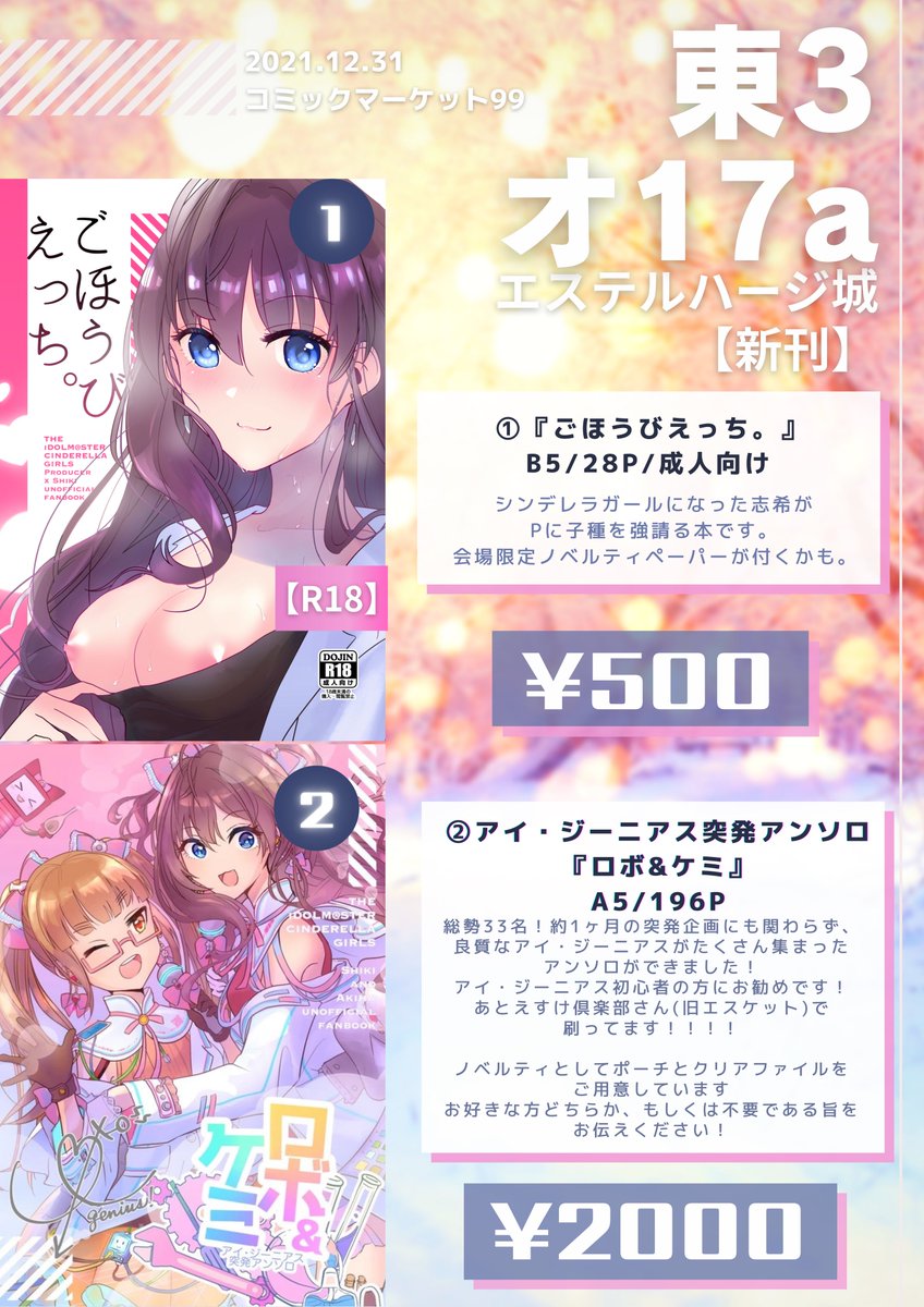 「エステルハージ城」お品書きです!! 12/31 コミックマーケット2日目 東3ホール オ17a にてお待ちしてます〜! 当日はロボ&ケミ表紙のクソデカポスターが目印です! #コミックマーケット99 #C99
