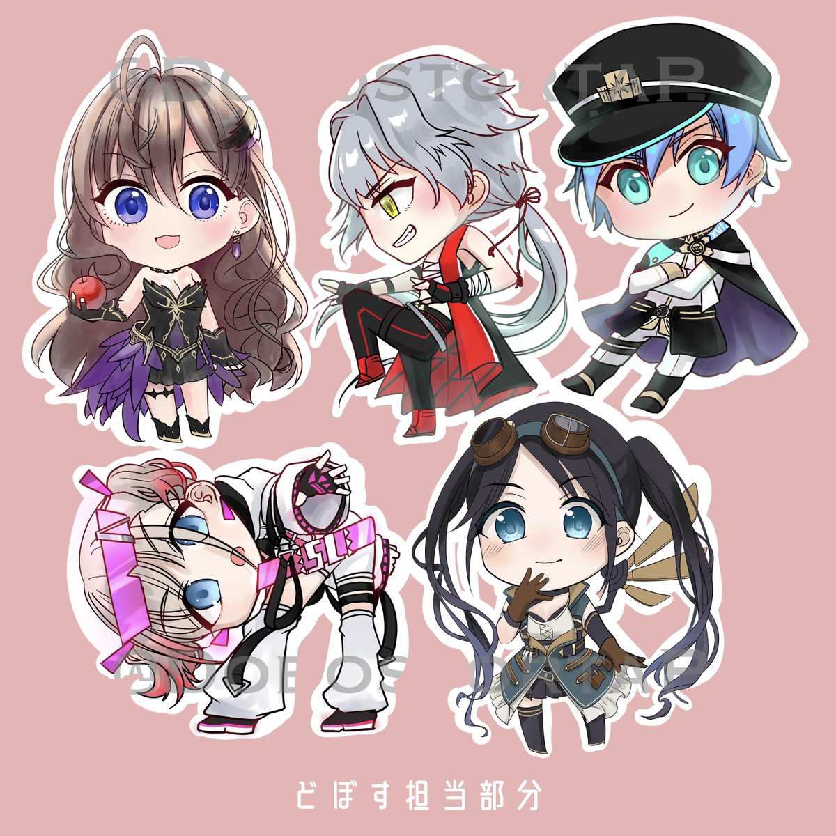 池袋晶葉ちゃんのぼり企画のSDキャラとデザイン周りに関わらせていただきました〜!! SDは一ノ瀬志希、牙崎漣くん、天峰秀くん、芹沢あさひちゃん、三峰結華ちゃんを描かせていただきました! 良かったら(&当選していたら)、当日見に行ってあげてください〜!! twitter.com/kavekuru/statu…
