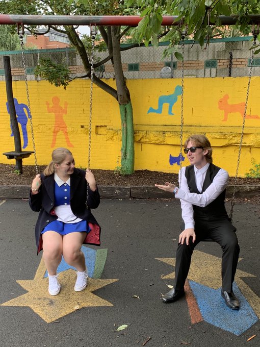 The Doctor and Clara having a chat. Love this photo of me and @ellegosborne #DoctorWho #cosplay #comiccon #besties #12thdoctor #clara