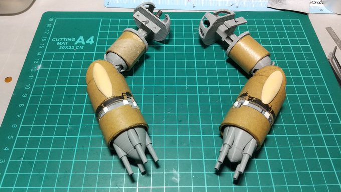 wip 腕のディティールを入れてます。 旧キットを流用するのでスクラッチ前のバランス取り程度に留めます。 #ズゴック #多脚 #スクラッチ #ガンプラ #3dprint