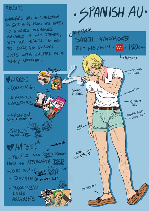 [SPANISH AU - Cayetano!Sanji] Sanji’s TUUURN! I hope you can read all the little “Sanji’s notes” this time! #Sanji #ONEPIECE #VinsmokeSanji #ヴィンスモーク・サンジ #cayetanosanji