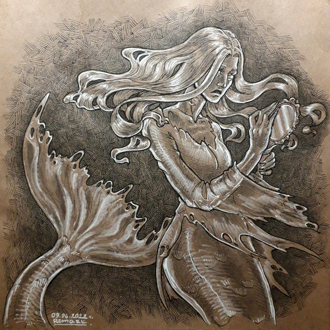 5. Пират Выброшенная за борт пиратка, чудным образом стала русалкой и продолжила свою разбойничью жизнь #япытался #sketch #sketchbook #MerMay2022 #MerMay