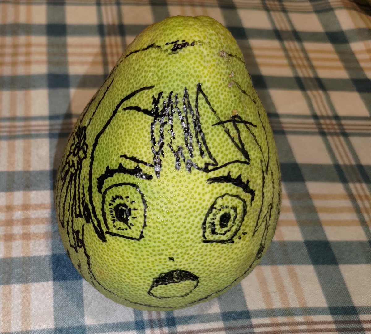 Sorry, my apologies. ─ In a small island in Southeast Asia, there is a custom that participants can paint on the grapefruit peel before watching the moon on Mid-Autumn Festival and eating grapefruit. #マールいイラスト #絵こころ #みとあーと #チグサーチ #描いたよクレアさん