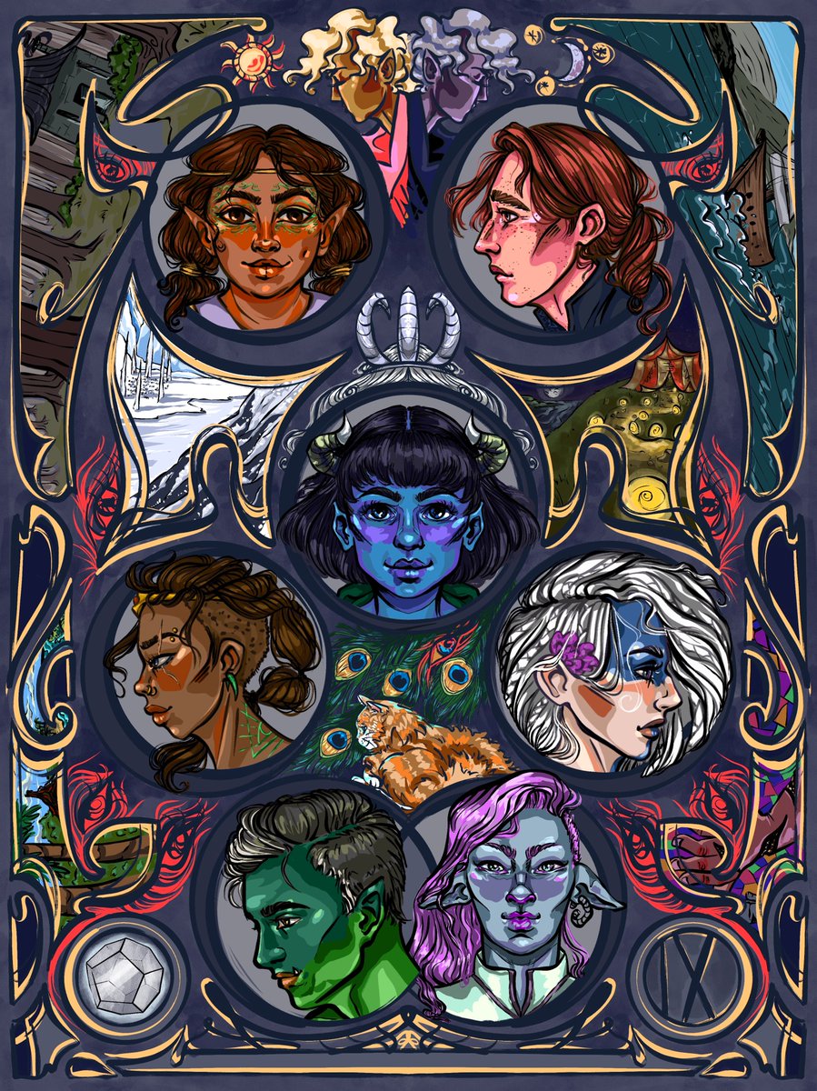 I'm pretty happy with this, but still deciding if it's a #wip or if it's done. All characters from @CriticalRole this is #criticalrolefanart of characters created by @executivegoth @LauraBaileyVO @TheVulcanSalute @WillingBlam @VoiceOfOBrien and @samriegel