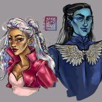 THURSDAY!! I think I'll call this "Bisexual Panic" ❤️💜💙 Opal and Dorian belong to @aimeecarrero+@robbiedaymond - thanks for these absolute gems,they set my heart aflutter (puns intended) #ExandriaUnlimited #CriticalRole #criticalrolefanart #ExandriaUnlimitedFanart #dndartists