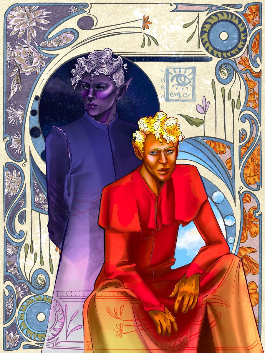 Me, looking at @matthewmercer 's day and night themed, morally ambiguous, pretty elven characters: I just think they're neat 😍💜❤️ just a lil Essek and Yussa for the dash, as a treat. #criticalrolefanart