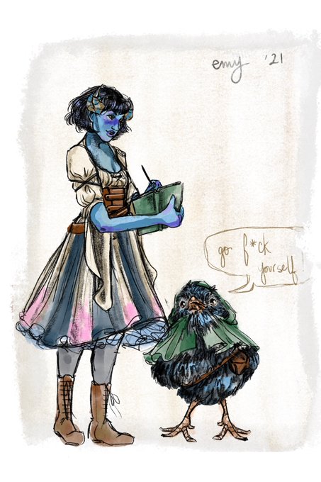 It's a tuesday and I'm already overwhelmed by my work for the week! whee!!! have a sketch of Jester teaching Kiri the most imperative vocab. #criticalrolefanart