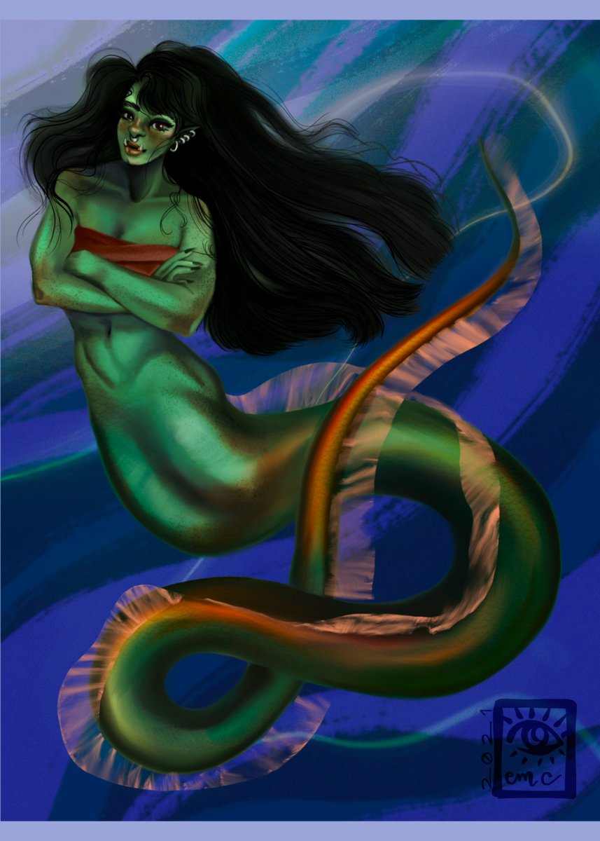 idk that i've ever shared mermuscle gf on here... i hope you like her! She's an orc, a mermaid, and jacked. obv a trifecta. #fantasyart #dndart #mermaidart