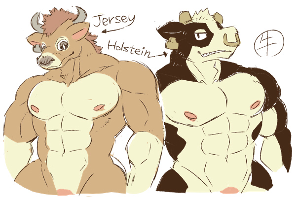 ラクガキ。雄バター要員ズ。 ホルスタインとジャージー描き分けできるかなっていう試み。