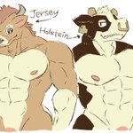 34 231 ラクガキ。雄バター要員ズ。 ホルスタインとジャージー描き分けできるかなっていう試み。 21/09/08 01:36