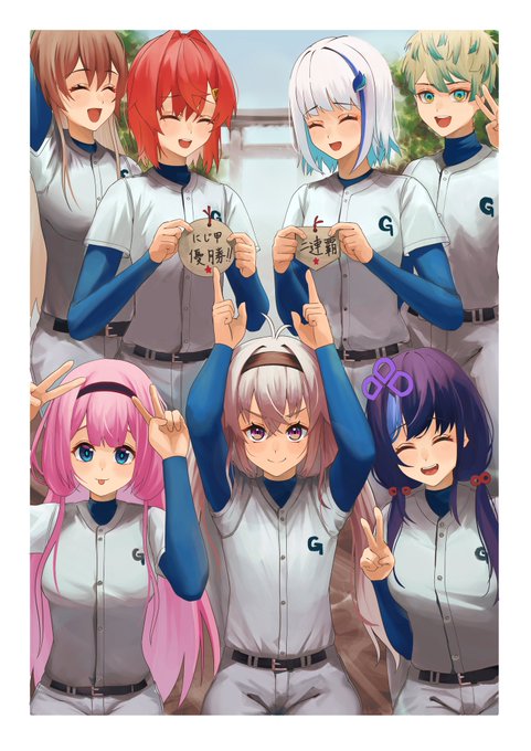 みんなで必勝祈願🙏🙏🙏 にじ甲本戦頑張れ!ヘル校!(ง •̀_•́)ง #にじさんじアルプススタンド #ヘル絵スタ #絵ンジュ #描くンゴ #マオのお絵描き帳 #フレン見て #まな板にマナ居た #ぽんとれーと