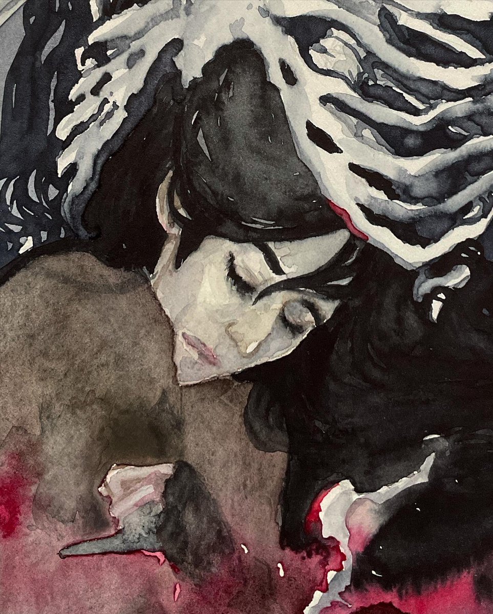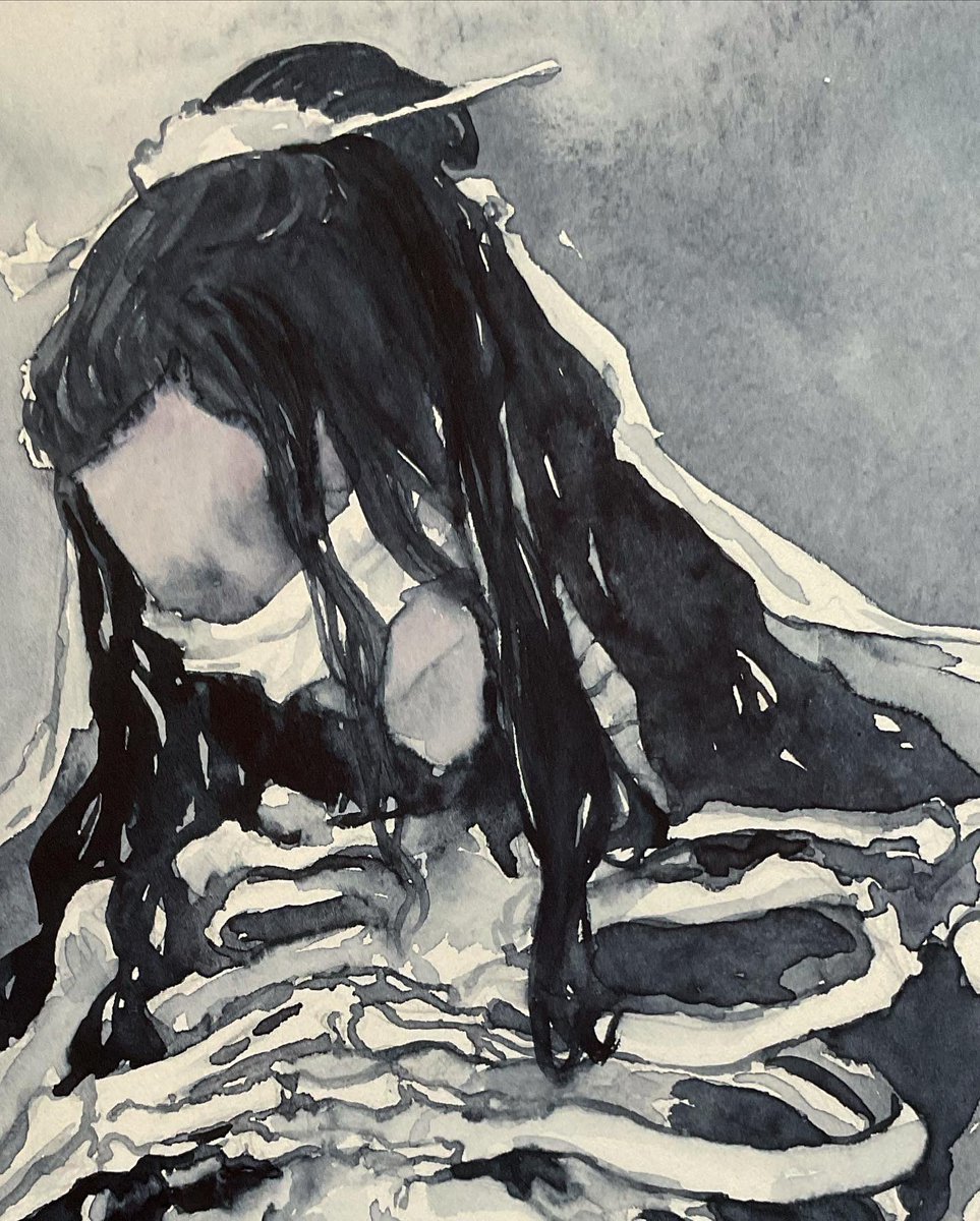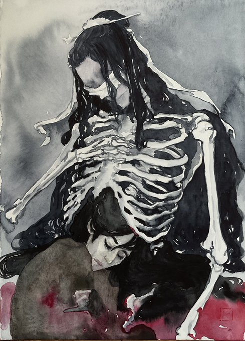 I wanted to do a reverse picture of that scene where XY bends down towards dead XXC face to “feel” his soul coming back. But with XXC ghost leaning over dying XY. #xueyang #XiaoXingChen #xiaoxue #yicityarc #MDZS #mdzsfanart #watercolor #ghost