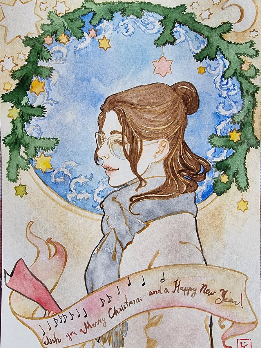 We wish you a Merry Christmas and a Happy New Year! Modern au XXC singing carols. #XiaoXingchen #mdzsfanart #MDZS #watercolorart