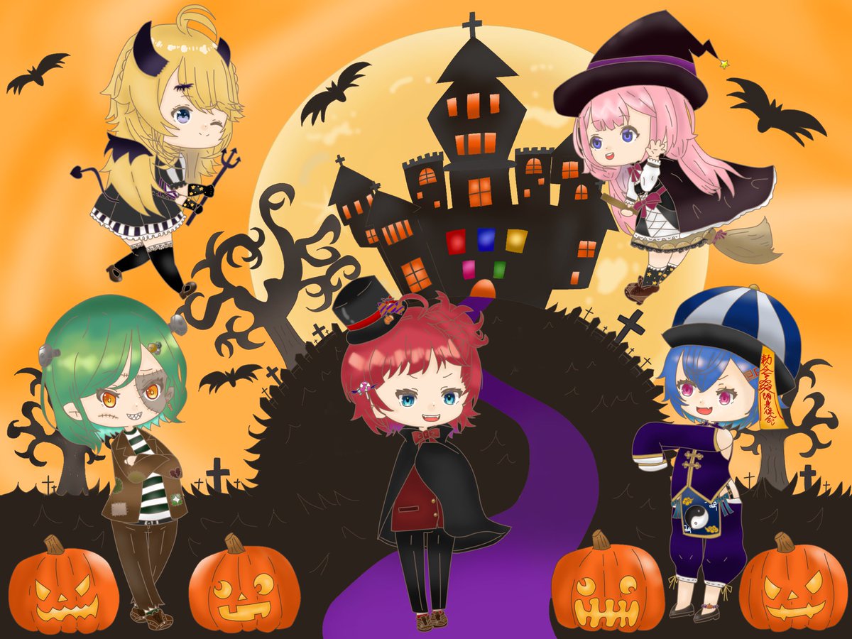 さんばかハッピーハロウィン🎃🍭💞 #いぬいらすと #ヘル絵スタ #絵ンジュ #さんばか