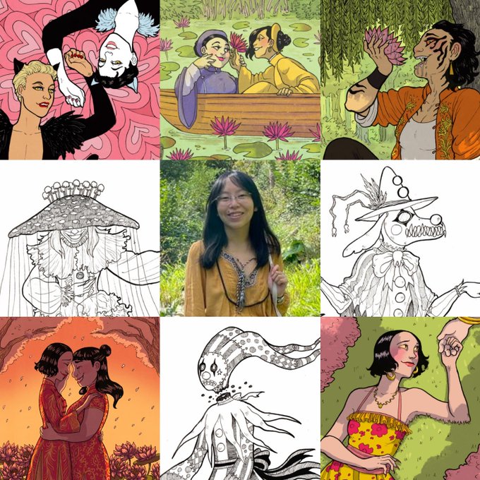 I see it's #PortfolioDay again. I'm Dominique Duong, an illustrator and cartoonist who makes queer fantasy and horror comics. I love making brightly coloured art as well as atmospheric B&W domduong.com duong.dom@gmail.com
