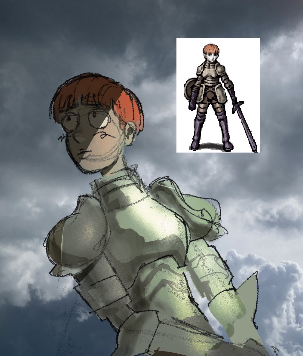 If you are disappointed in your drawing speed DONT. CARRY AROUND. A PENCIL. only draw with pens/sharpies! When you draw that arm wrong just stick on post-it and redraw the WHOLE thing. Ctrl-z/erasing every odd stroke is the ENEMY of line confidence. twitter.com/Vesperis_Art/s…