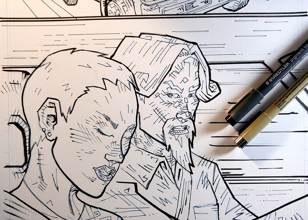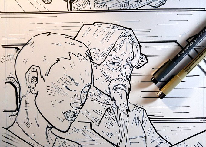 ah!! today's #InkTober prompt is #Freeze, and i almost froze today, but finally made it happen this evening!! ah!! @SIGNALsaga page detail. trying to find a balance between line weights. anyways... #InkToberDay4 #InkTober2019 #ComicBooks #GraphicNovels #Art #Illustration #Comics!