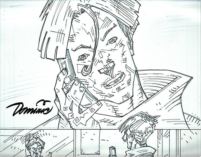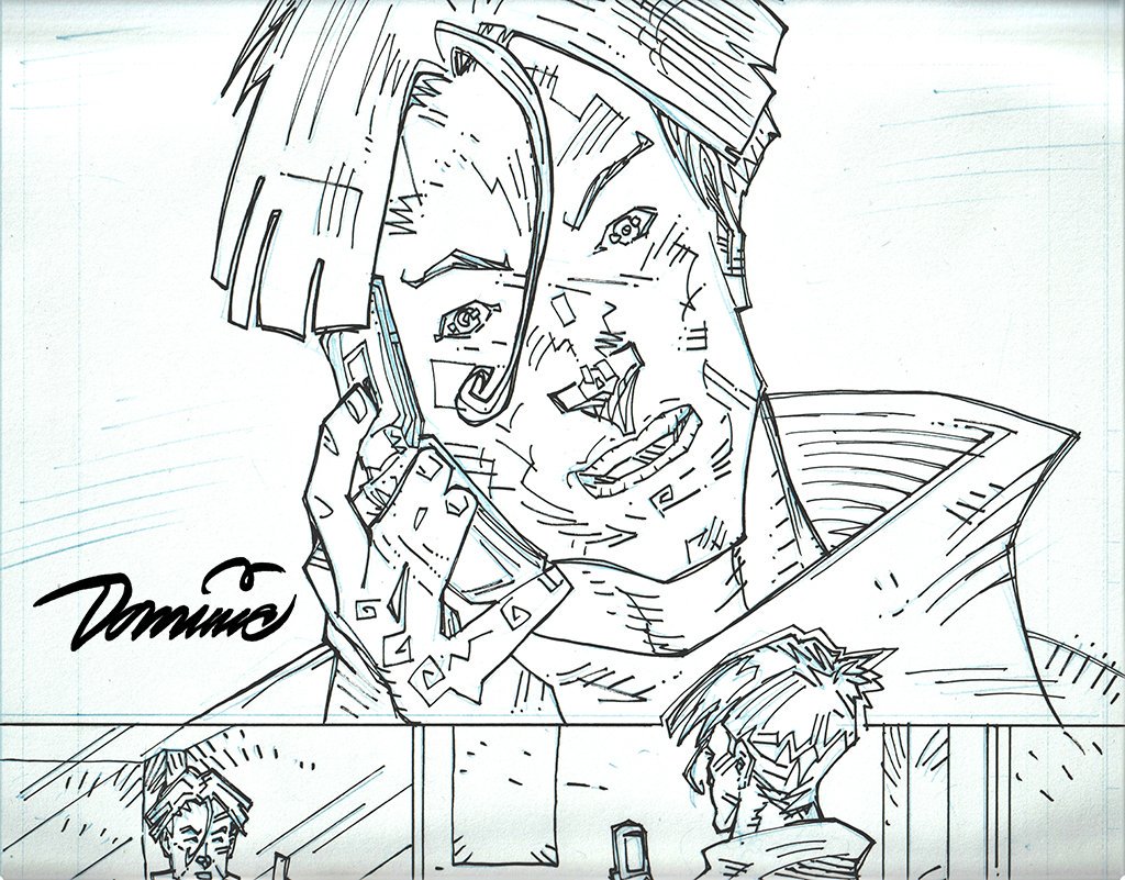 #Day2 of #InkTober2019 : top of a page from @SIGNALsaga [detail]. you can still see the printed blue lines [cyan] under the #Ink #Art | tighter #LineArt piece than yesterday. hope you like where this is going. #OldSchool #Phones #Illustration -Dominic. #ComicBooks #GraphicNovels