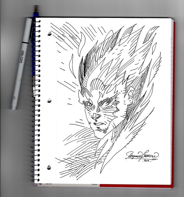 the #InkTober2019 prompt for #InkToberDay13 is #Ash. so here's some #fire dude. calling him #Prometheus... drawn w spiffy new @winsorandnewton 0.5 pens [they are perfect] on lined paper. the lines were removed magically through a spell [ie photoshop]. i enjoyed this one. #Comics!