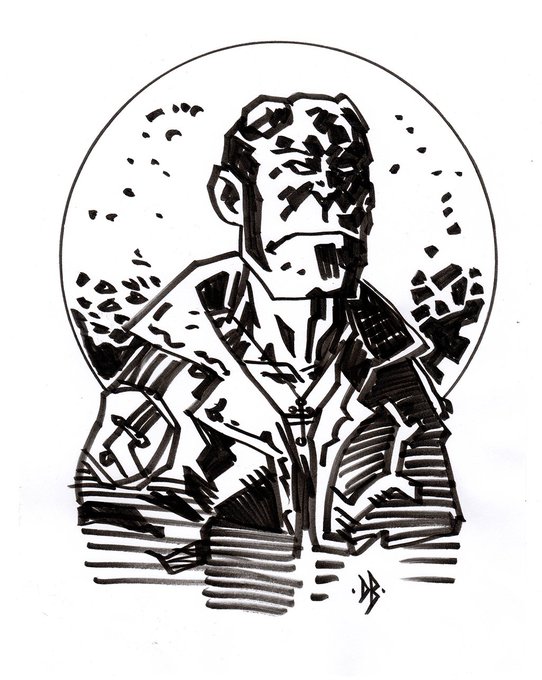 full shot! #HellBoy #InkTober2019 #InkTober enjoy! -dominic. :) #Illustration #Art #Comics #ComicBooks #Drawing #Ink #FanArt now go #vote!!!