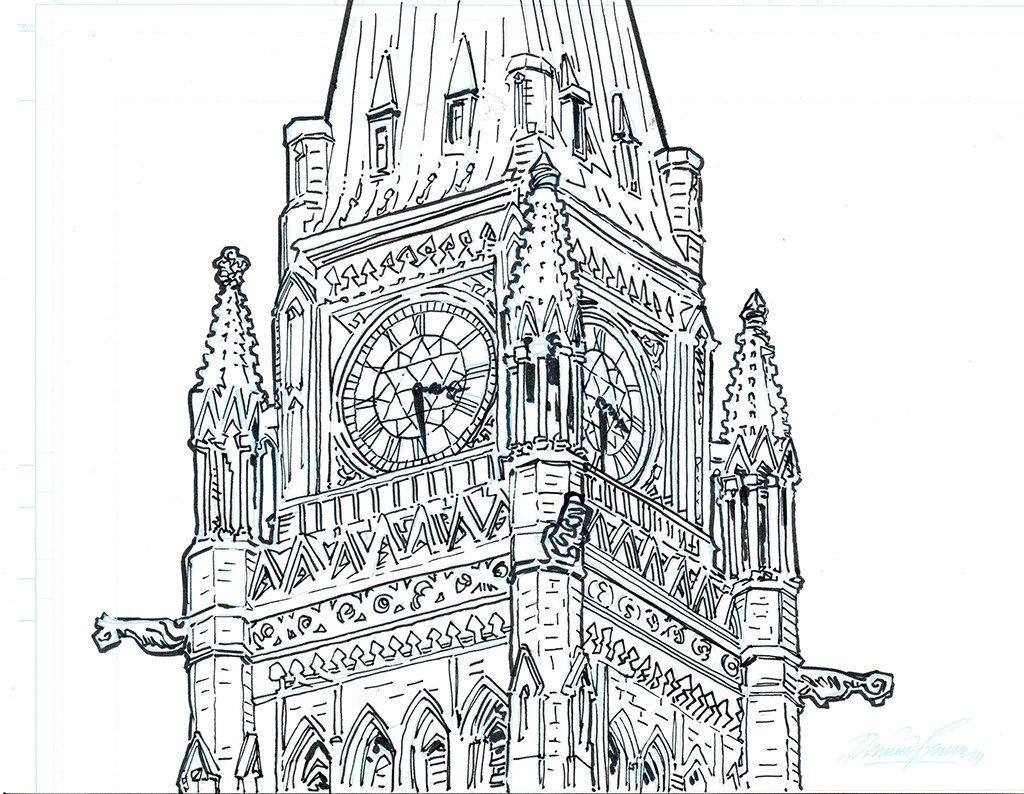 perhaps a better shot!?!?!??! #Ottawa #Parliament #Buildings #Peace #Tower #Illustration in #Ink for #InkTober2019 #BD #Comics #ComicBooks -dominic. :/