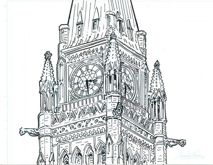 #Canada wakes up a country divided. to commemorate this dreadful moment, might i present a #WIP and #Final #inks #PeaceTower #Illustration #Bonus #Image from @SIGNALsaga / @mirrorcomics for #InkTober2019 #InkTober #Art #Comics #ComicBooks #GraphicNovel -dominic. :/ :/ :/ #Ottawa!
