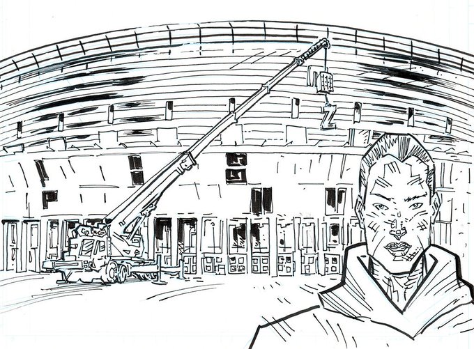 #building the #dream in @SIGNALsaga for #InkToberDay23 - it used to be a marsh, now it's Zero City Stadium. not sure which is best!! ah!!! enjoy! -dominic. :) #Art #Illustration #Comics #Ottawa #CTC #1990s #throwback #ComicBooks #GraphicNovels #Canada #InkTober2019 #InkTober #BD!