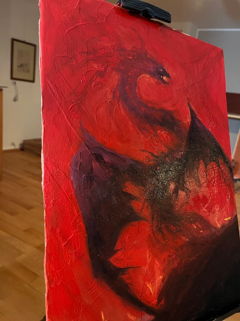 I've been working on this #dragon painting for a future token, and that was quite the challenge. But the medium starts to grow on me. What do you think? :) #traditionalart #fantasyart