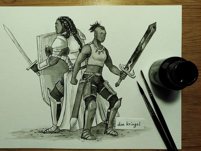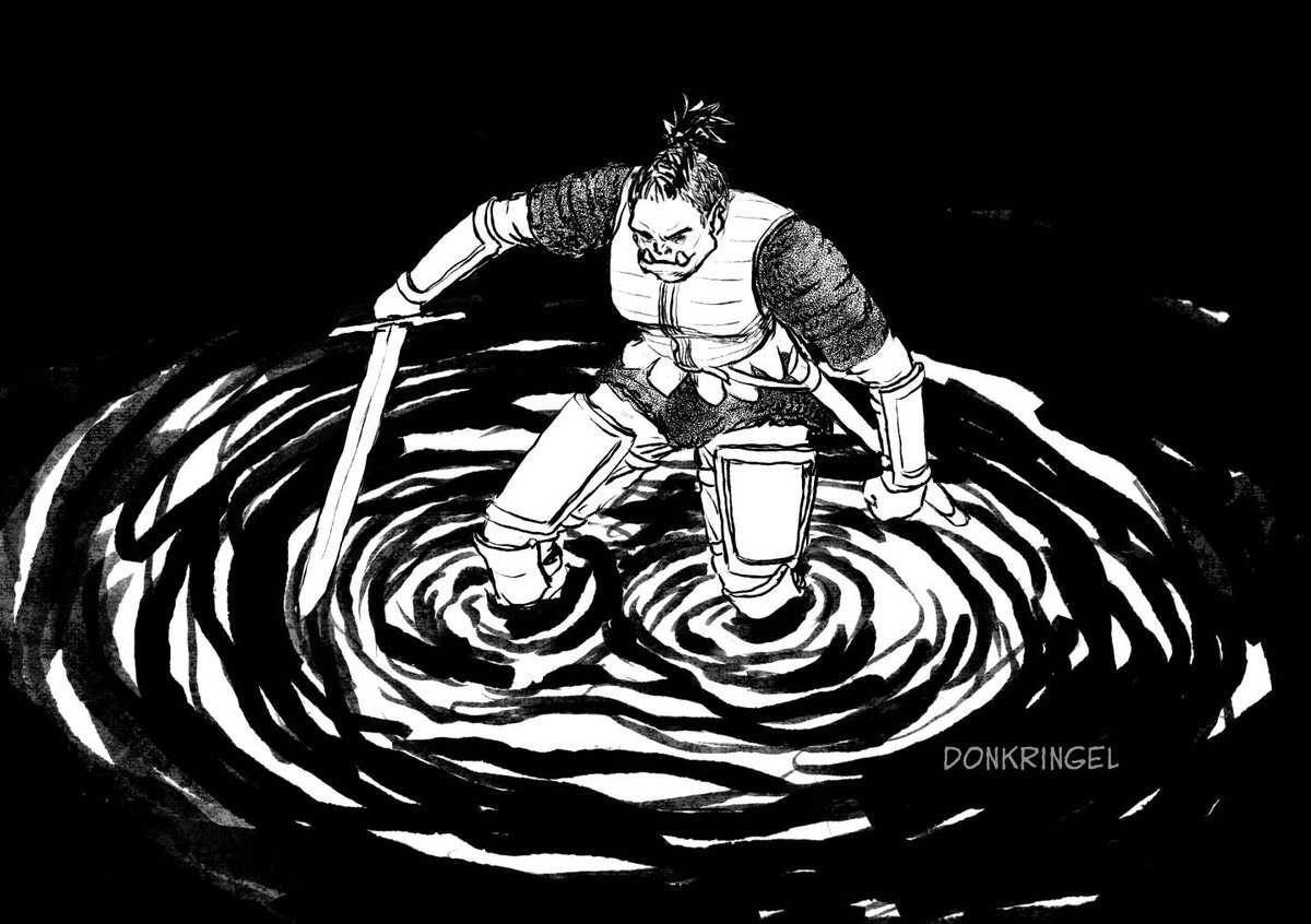 #inktober / #knightober / #orctober prompt 16: water. I’m a bit behind on knightober, but I will just take it slow this year, and maybe do some more out of order, or quicker things, and probably not all. Today: me: “I’m gonna do just a quick sketch” 3 hours later: “Ooops??”