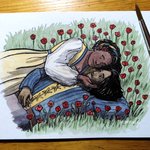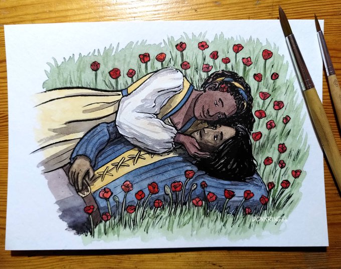 #inktober / #knightober 2020 Prompt 13: Flower. I was soooo in the mood to draw a fanart for the comic “Sleepless” by @sarahvictoriav and @leiladelduca – Poppy and her knight Cyrenic! I love them so much, and I love this comic.