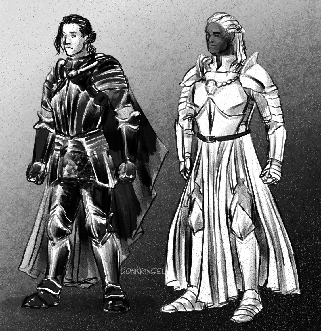 #inktober / #knightober prompt 23: Moon! Not sure yet about the hair… And both knights together, with their opposite color schemes #knight #originalcharacter