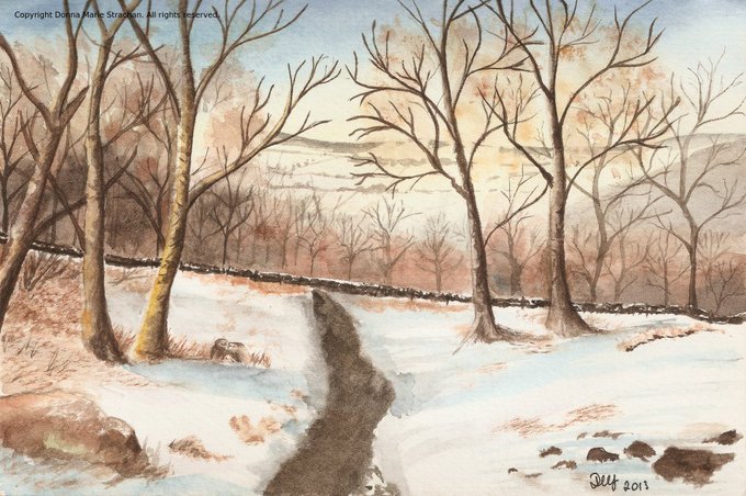 This is an oldie from 2013, but I still like it. A5 watercolour painting of a snowy forest ❄️ #art #ArtistOnTwitter