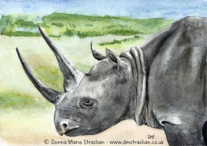 I just noticed that it's World Rhino Day today, so here's a black rhino that I painted last year. 🦏 #WorldRhinoDay #artistsontwitter #painting