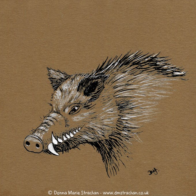 #Monstober Day 2 - Fangs. This little piggy is NOT going to market...🐖 Ink drawing on recycled kraft paper. I was trying to be more imaginative, but I need more practice at this monster making business! #drawtober #artchallenge #drawing #illustration