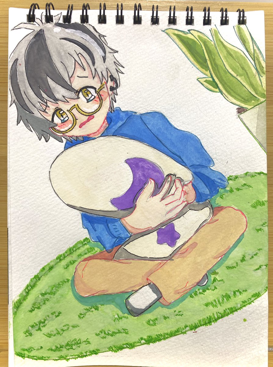 20 143 学校の授業で描いたのですが… 自分を表現するー、 みたいなテーマなので好きなものを詰め込んでます。 勝くんも|・-・`)ヒョッコリ #漆黒の水鏡 21/11/08 18:23