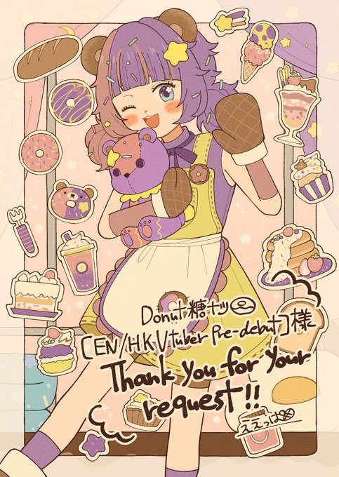 Got this amazing illustration from @/eextupa0000💜 Its so cute and they did so many sweets for me 😍 #Skeb #donuteatmyfanart #Vtuber