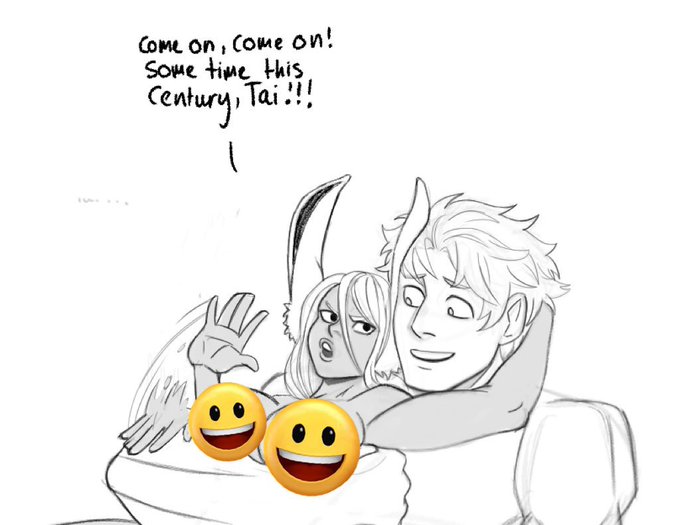A lil wip from a lil a/b/o chubbybunny comic im werkin on! Alpha miruko really out here trying to fascinate omega fatgum with a bagel for eating as is the style #mirugum #chubbybunny #miruko #mirko #rumiusagiyama #fatgum #taishirotoyomitsu #mha #bnha