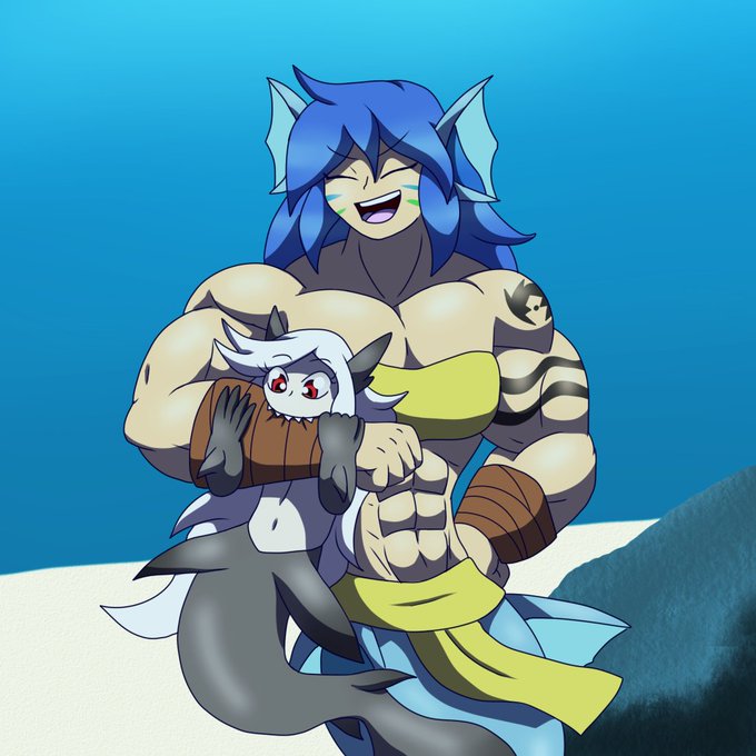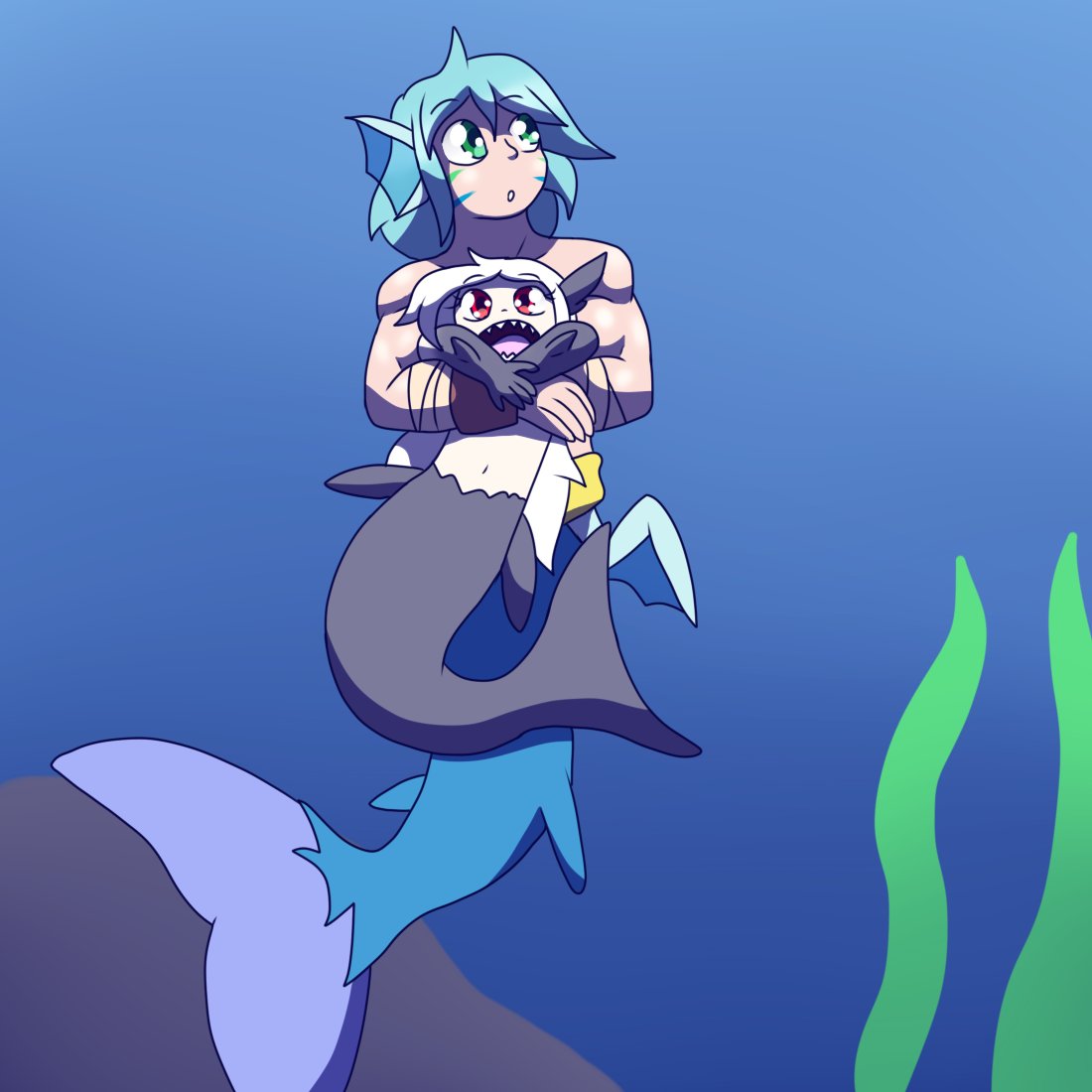 Showing off Nering (left) @MermaidNerin Nameless octopus gal Jackieeisendrache on DA. #mermay #mermay2021
