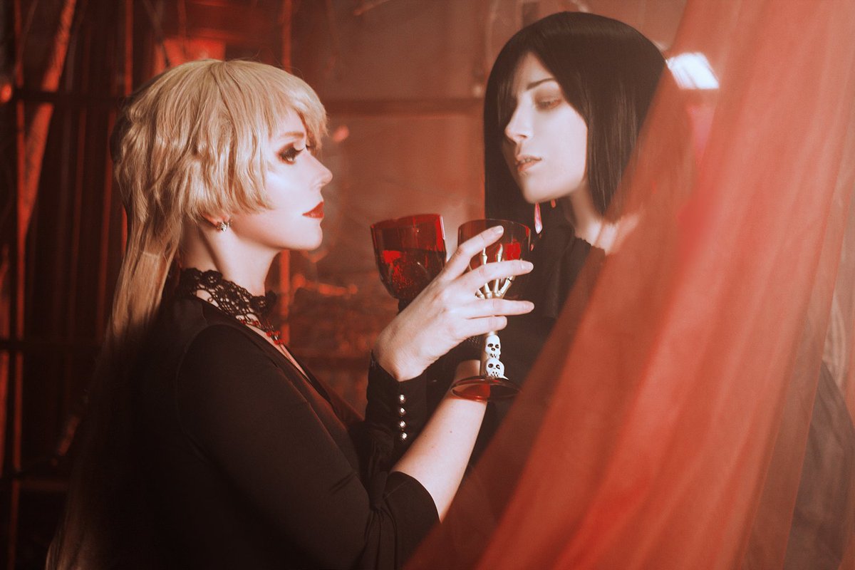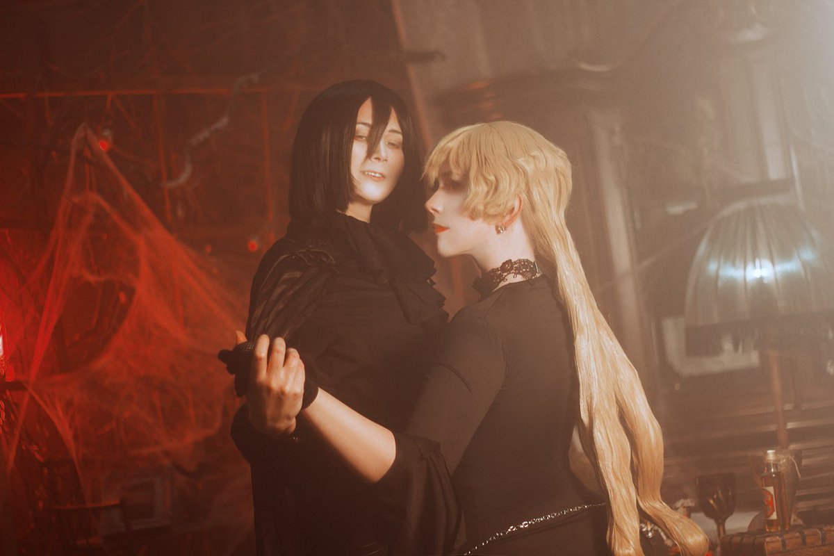 ДсВ закончилось, а горяченькое нет😉 Ph: @bertranblack Модели: @Doorts1 & @Aronioro #HappyValentinesDay2022 #goodomens #fem #femaziraphale #femcrowley #photocosp #cosplay #aziraphale #crowley #hot