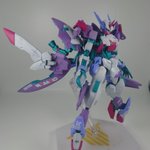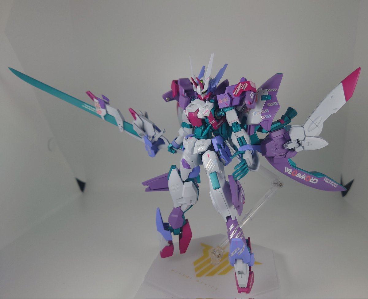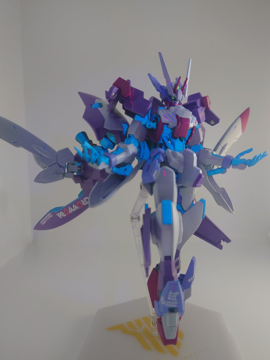 「星翼ガンダム(仮)」 星と翼のパラドクスをモチーフにしたガンダムとして製作しました 全身のフレームとスミ入れに蛍光塗料を使用しているのでブラックライトで光ります 刀はアクリル板とプラ板からスクラッチしました #ガンプラ改造