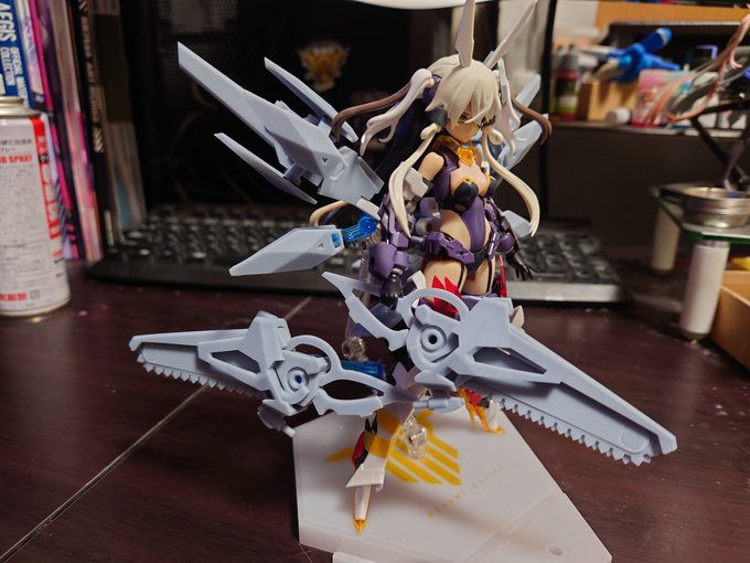 33 120 キタ━━━━(゚∀゚)━━━━!! 追加したバックパックは羽のような感じにしつつ九尾の尻尾をイメージ 前に展開して大型ビーム砲にも! もちろん小型ビットは全て取り外し可能浮かせてる感じで展示したり手持ちにしてカタール風にすることもできる! 良い感じなんじゃないの〜! #メガミデバイス 23/04/24 06:51