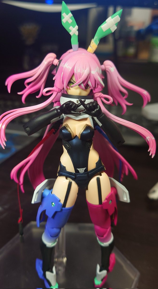 ララネル バニーガール仕様完成しました! ピンクメインのララネルを緑系で塗ってみました バニーガールをイメージしてパーツを加工し、ランナータグからネクタイを製作しました #30MS選抜オーディション