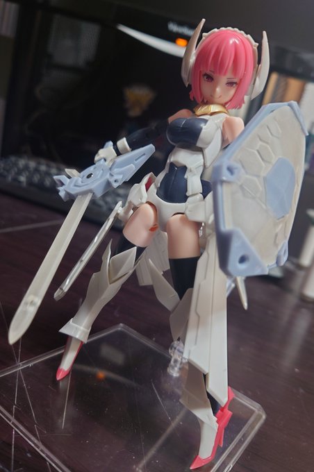 新作の試作品のロングソードとシールド クリアパーツも使って良い感じにカッコいいのでは!? 納刀もできるしサイズ感も良さげ〜! ちょっと調整すれば行けそう! #メガミデバイス