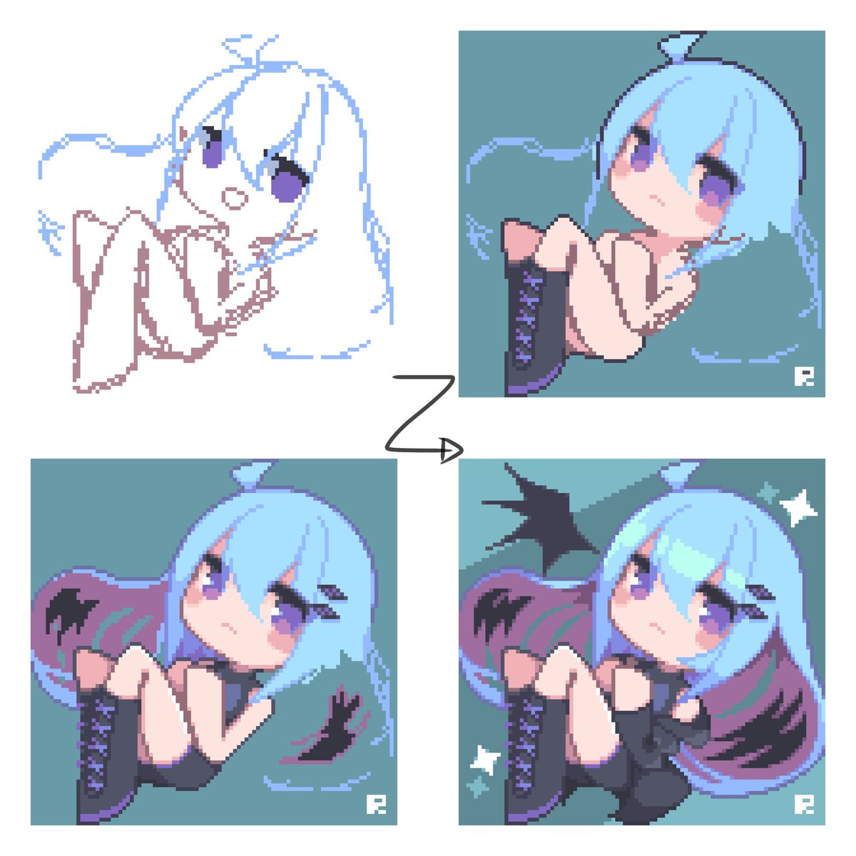 今更ですがメイキング貼っておきます🙇 #pixelart #ドット絵 twitter.com/Dot_R3/statu…